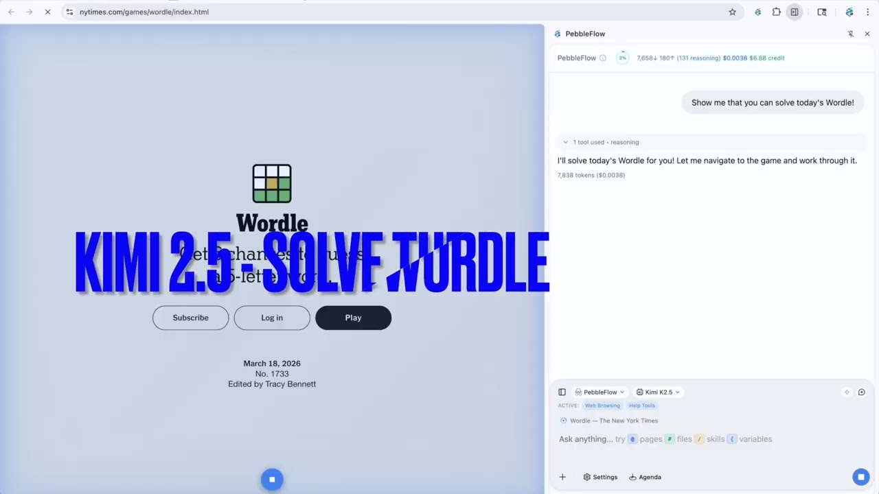 PebbleFlow solves problems and answers questions using cutting edge AI and proprietary web tools. This video demonstrates a take one on yesterday's Wordle.